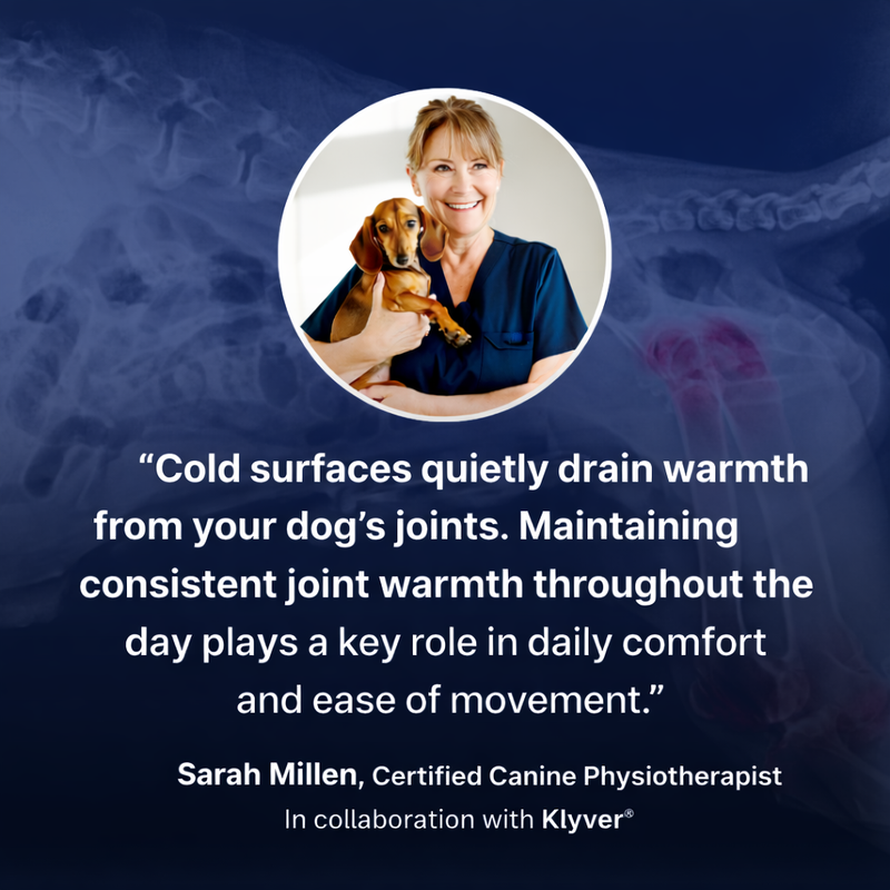 Thermal-reflective mat warms joints with your dog’s own heat.